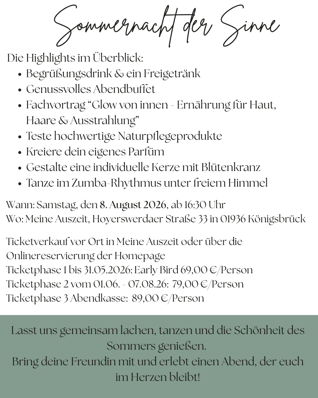Samstag, dem 8. August 2026, ab 16:30 Uhr - Sommernacht der Sinne